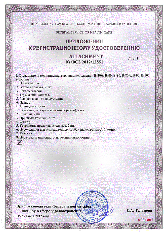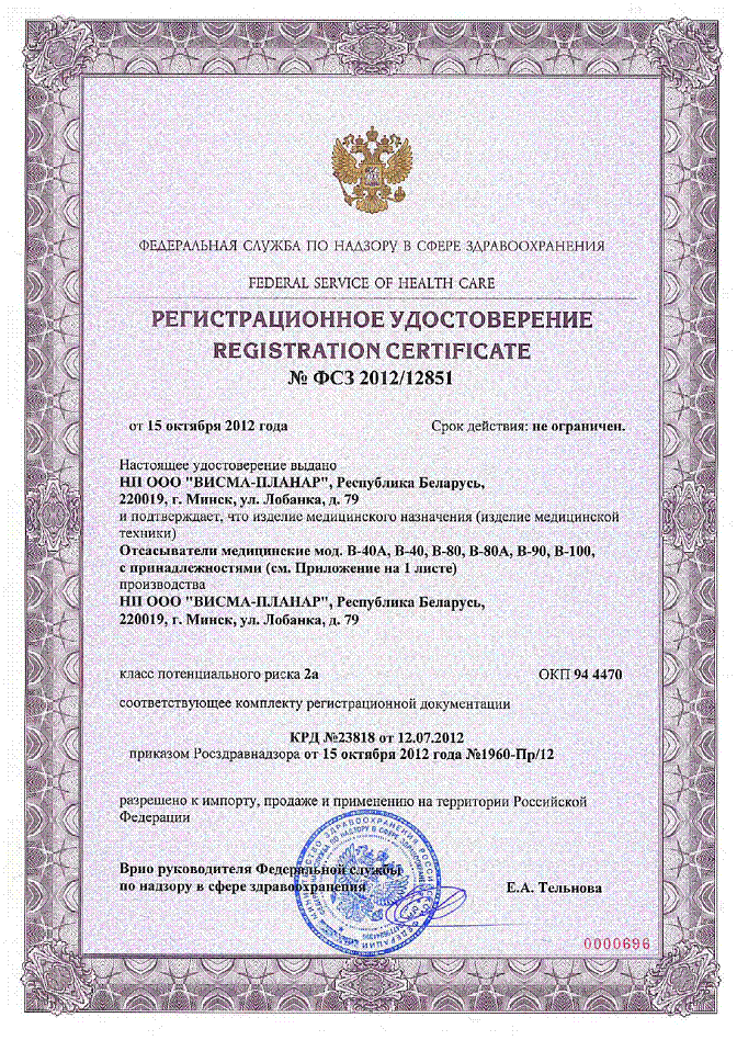 ………… Регистрационное удостоверение отсасыватели (РФ)
