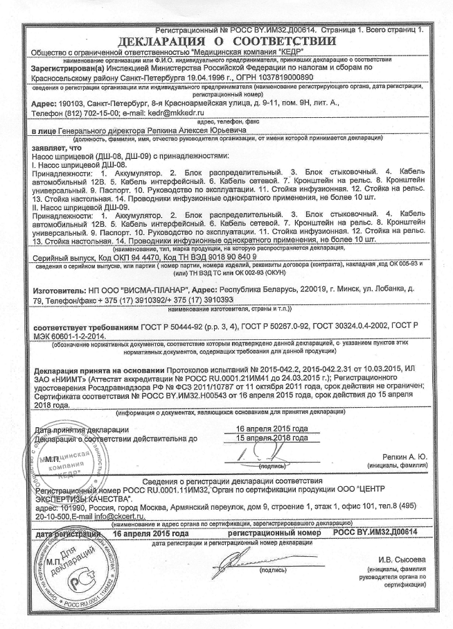 ………… Регистрационное удостоверение ДШ-08