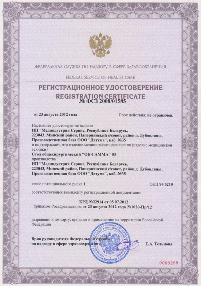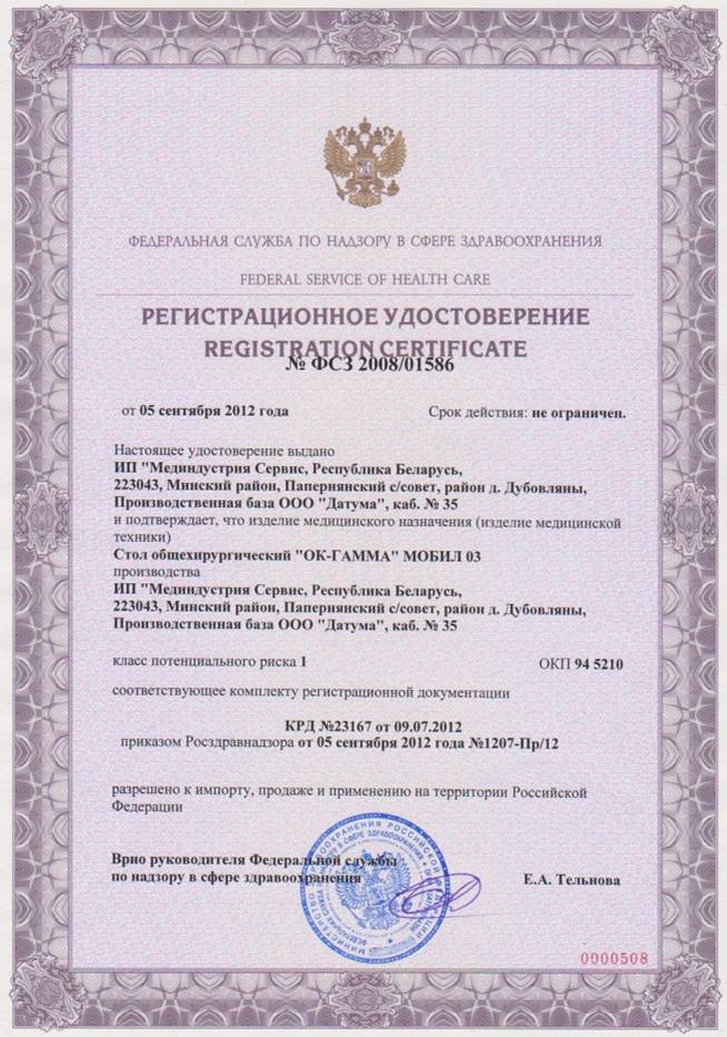 ………… Регистрационные удостоверения "ОК-ГАММА" 03 и "ОК-ГАММА" МОБИЛ 03