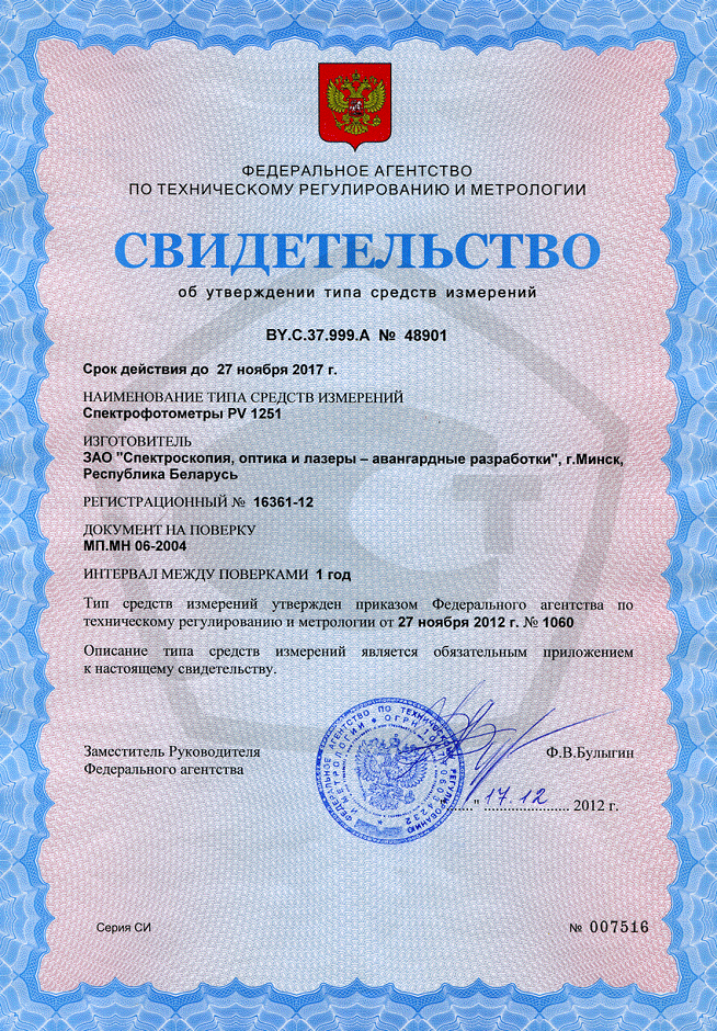 ………… Регистрационное удостоверение РФ спектрофотометр PV 1251C