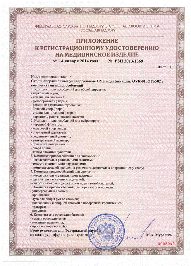 ………… Регистрационное удостоверение РФ на стол операционный ОУК-02 (ОК-БЕТА)