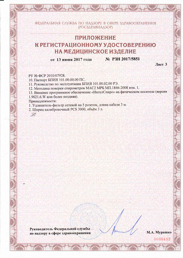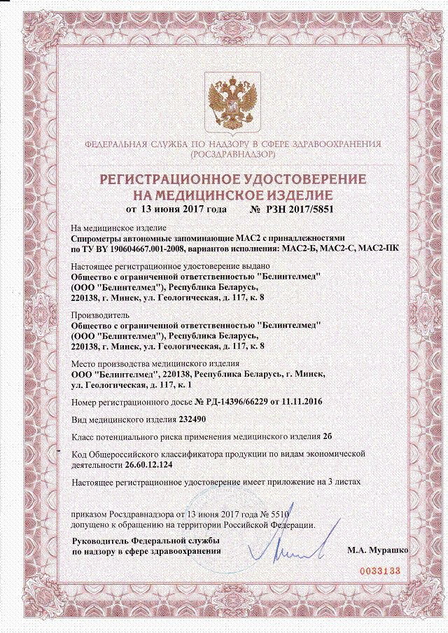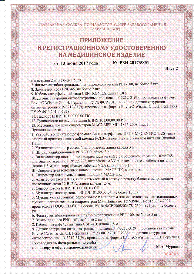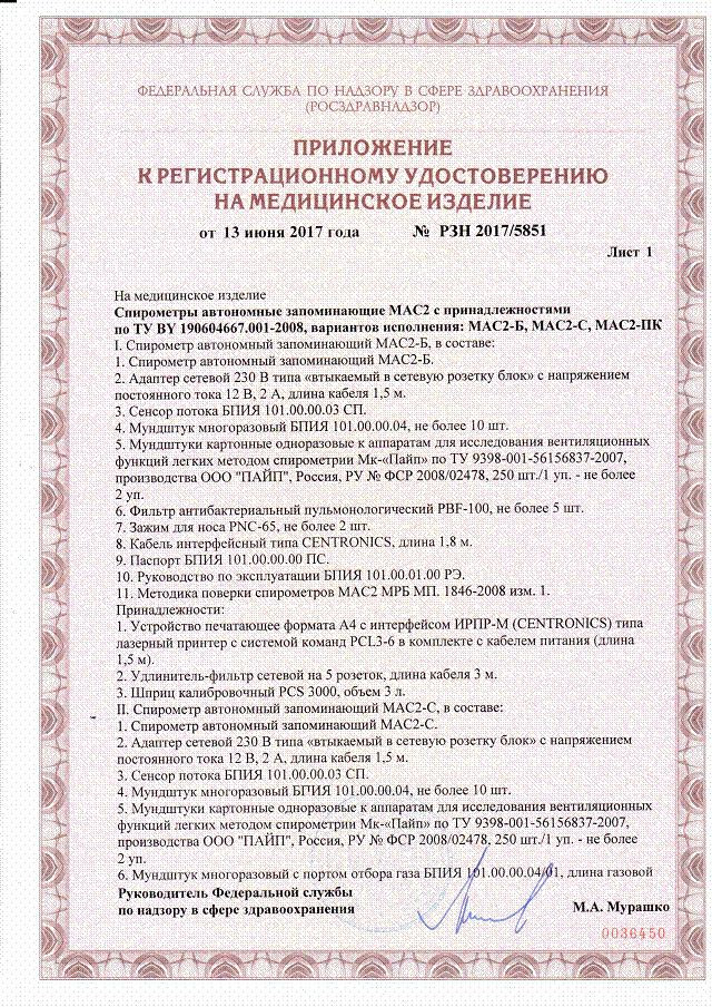 ………… Регистрационное удостоверение РФ на спирометр МАС-2