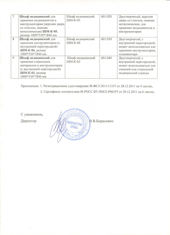 ………… Регистрационное удостоверение Шкафы медицинские серий МШ-1, МШ-2