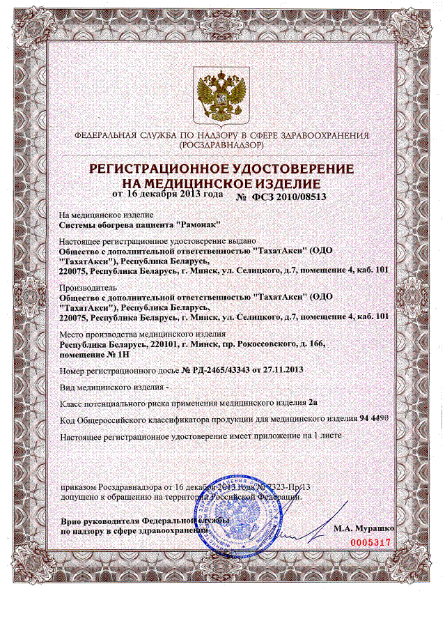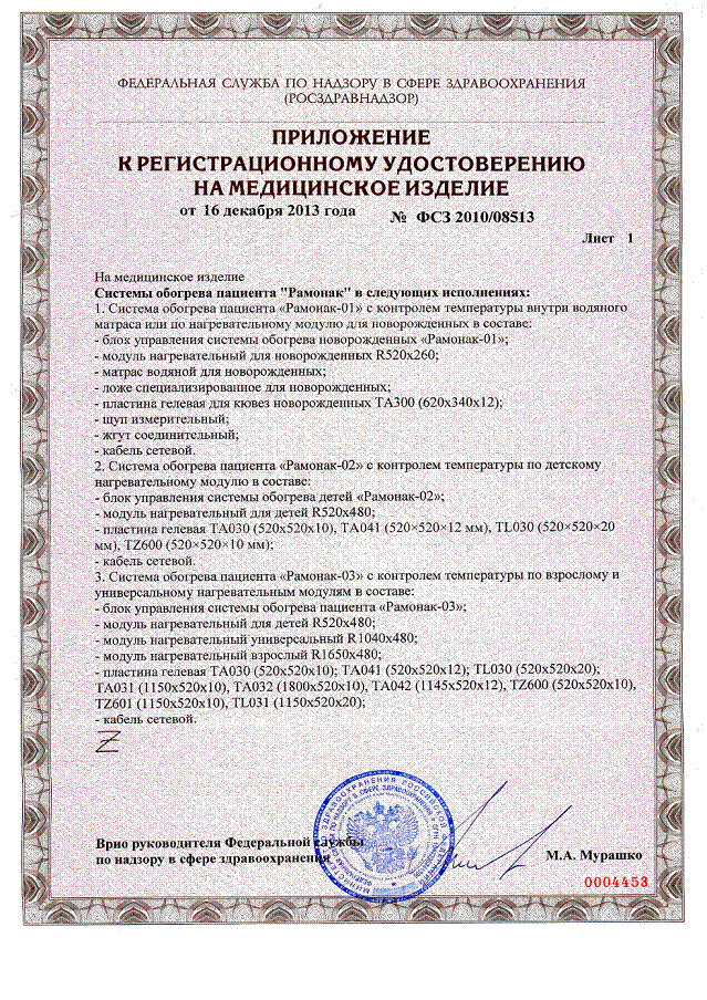 ………… "Рамонак-01" система обогрева новорожденных на водяном/гелевом матрасе