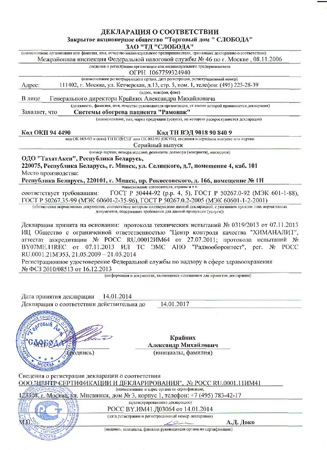 ………… Декларация о соответствии РФ аппараты Рамонак-01, 02, 03