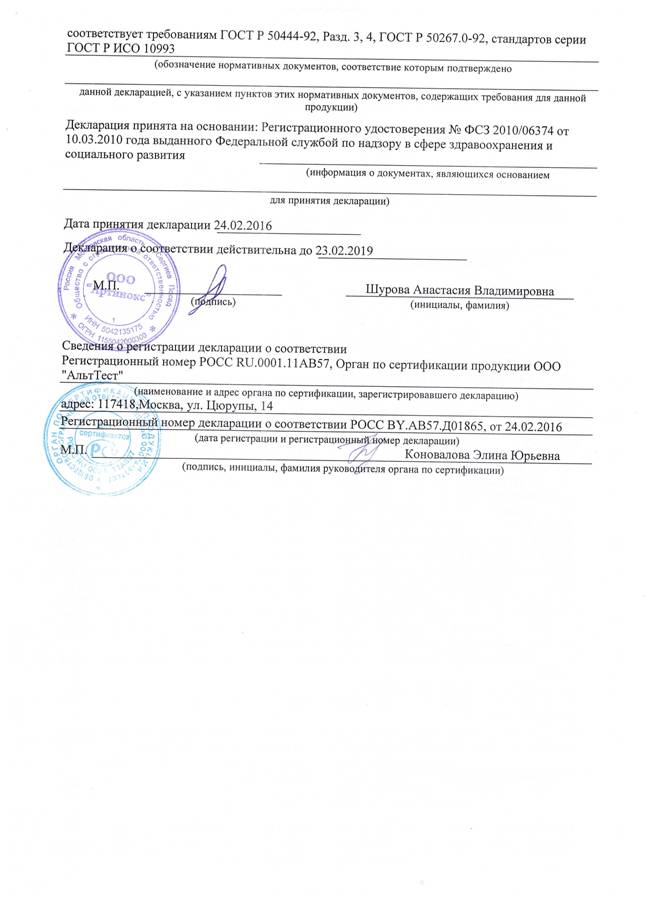 ………… Декларация о соответствии на Мебель медицинскую серии AR