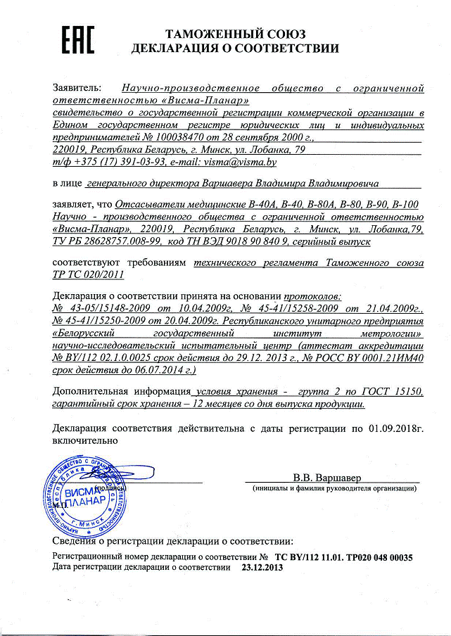 ………… Регистрационное удостоверение отсасыватели (РФ)