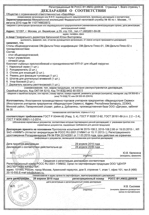 ………… Декларация о соответствии на ОМ-Дельта Плюс