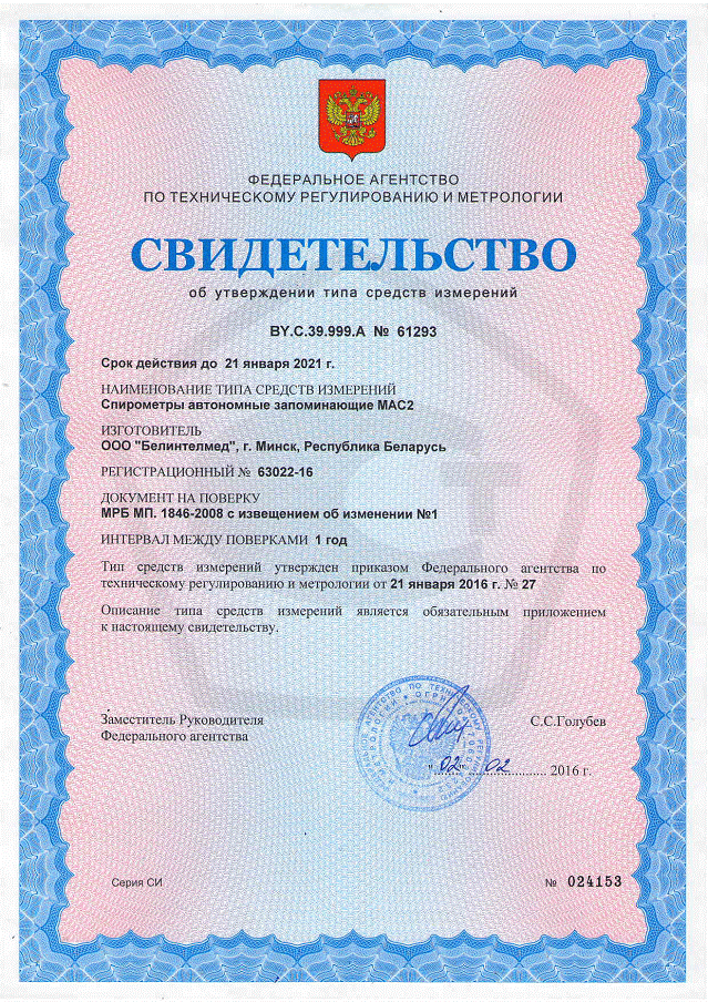 ………… Свидетельство об утверждении типа средств измерений МАС2